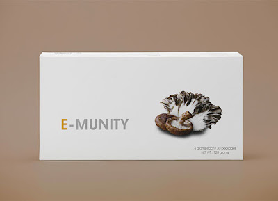 E-Munity contains #cordyceps mycelium and #shiitake mushroom, #ABM mushroom, and #maitake mushroom. E-Munity also contains #Cassia tora and #blueberries.